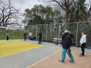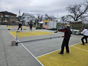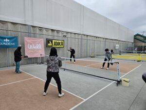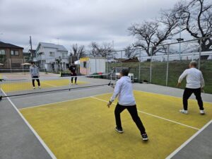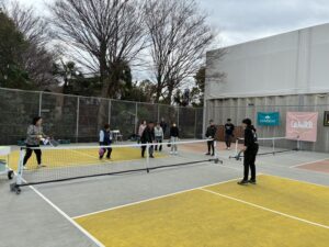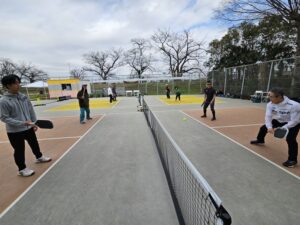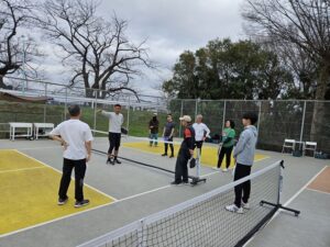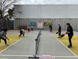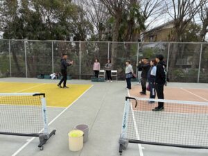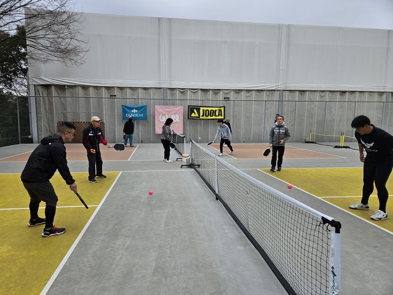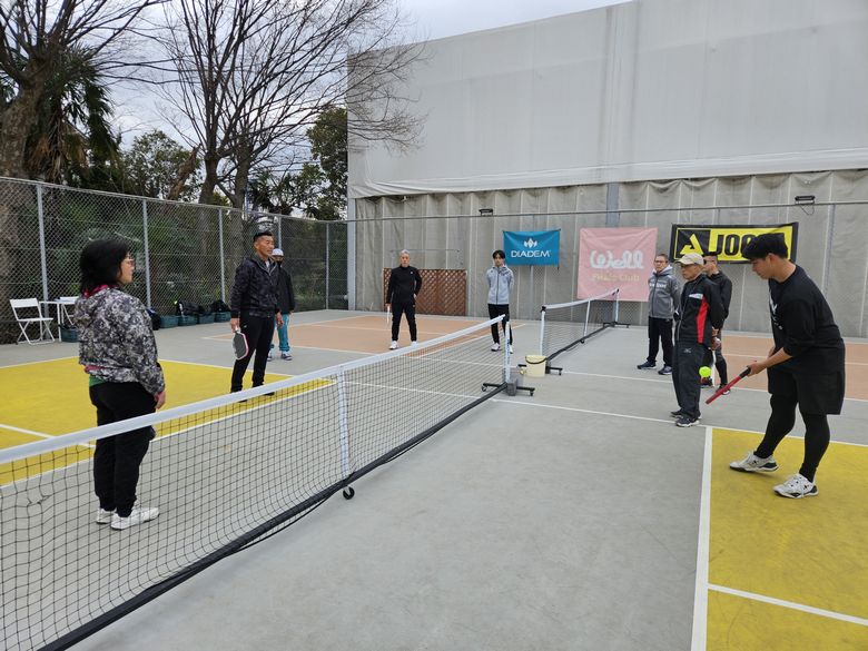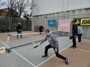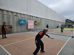 基礎編では、フォーム、当て方、ボールコントロールのやり方など、正に基礎固めの内容を繰り返し行いました。実践編では、戦術やポジショニングなどゲームで勝つため知識を意識しながら打ち合いました。佐藤選手から楽しく、時には熱く教わり、多くの参加者様がピックルボールの奥深さを実感された様でした。