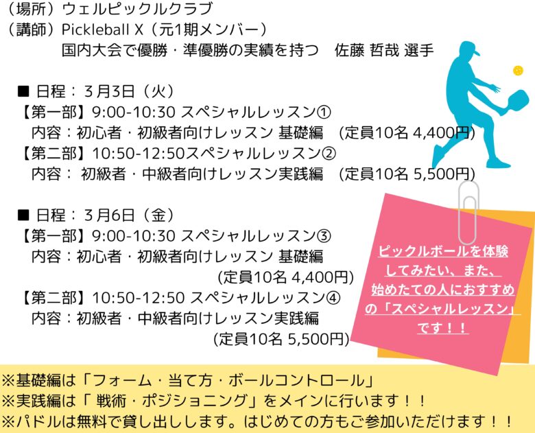 元デビスカップ日本代表選手の佐藤哲哉 選手を招待し、特別レッスンを開催します!