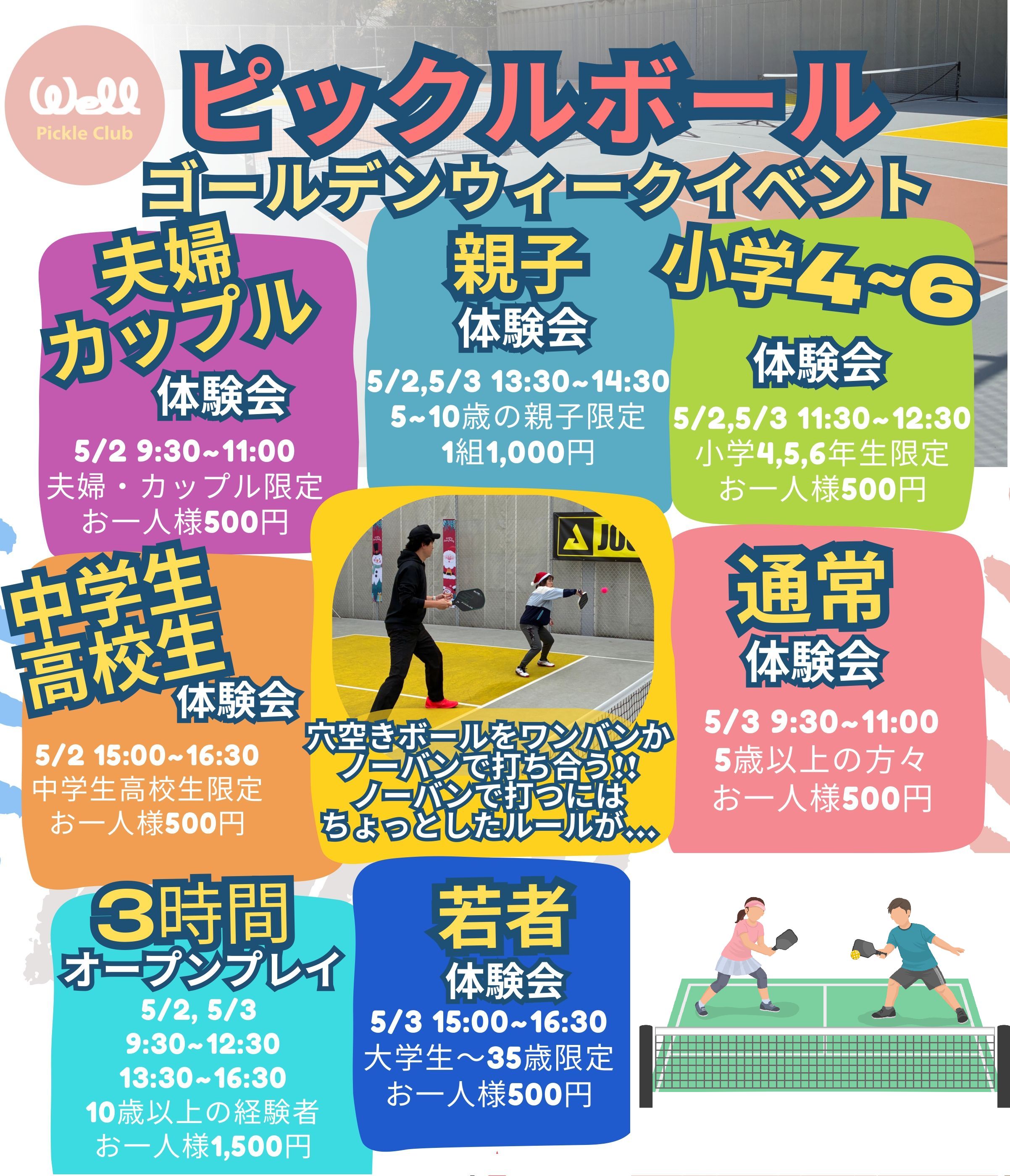 内容:当日集まったメンバーでピックルボールを楽しみます!